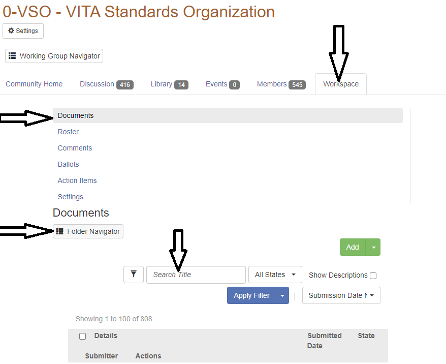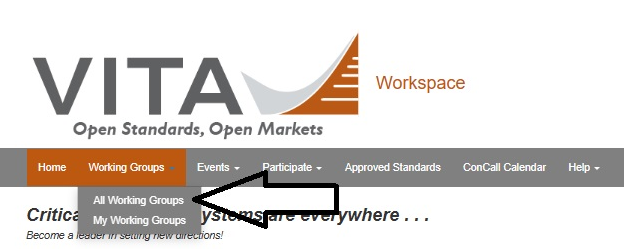 - Navigating to Working Group: Top tab, on "Working Groups" dropdown menu, select "All Working Groups".