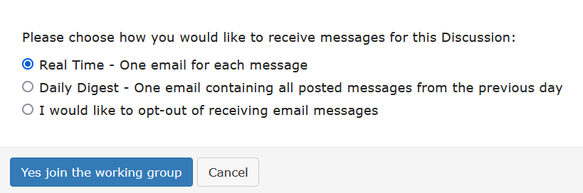 - Click "Join" and choose how you would like to receive Meeting Notification and Discussion messages